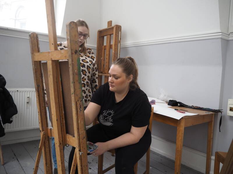 Grundkursus i tegning og maling for unge - eller voksne i kunstneren Lotte Kjøllers eget atelier. Basic course in drawing and painting for young people in the artist Lotte Kjoeller's own studio.